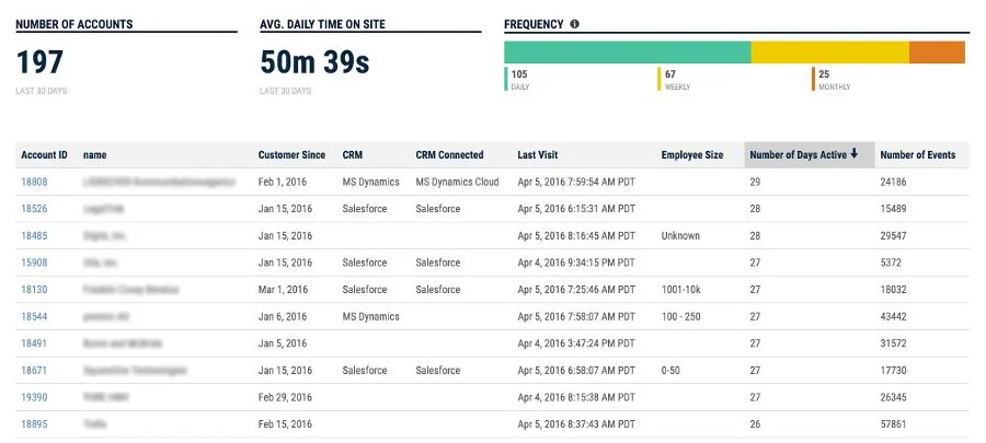 「カスタマーサクセスの責任者、CMO、そして私自身が、市場開拓へのアプローチを分析するためにPendoを使用しています」と、Josefsberg氏は述べます。「当社では、規模、Alexaのランキング、CRMシステムを使用しているかどうかによってお客様をセグメント化しています。これらのフィールドをSalesforceからPendoに取り込み、これらのさまざまなセグメントがどのようにプロダクトと関わっているのか調べています。