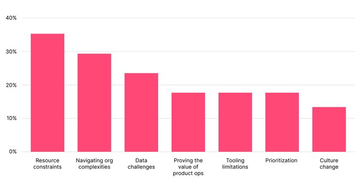 In addition to priorities, we also wanted to learn about the challenges today’s product ops pros are facing. We weren’t surprised to see that “resource constraints” rose to the top of the list. “Proving the value of product ops” was also a top challenge—and we think these two findings are linked.