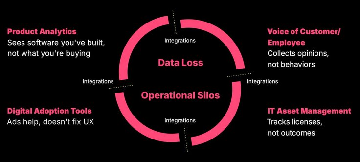 Despite massive investment, employee productivity and engagement are declining. All of IT’s well-intentioned, vetted software investments are failing to deliver on their promises. At the same time, product teams waste precious development resources on features that never realize their intended value.